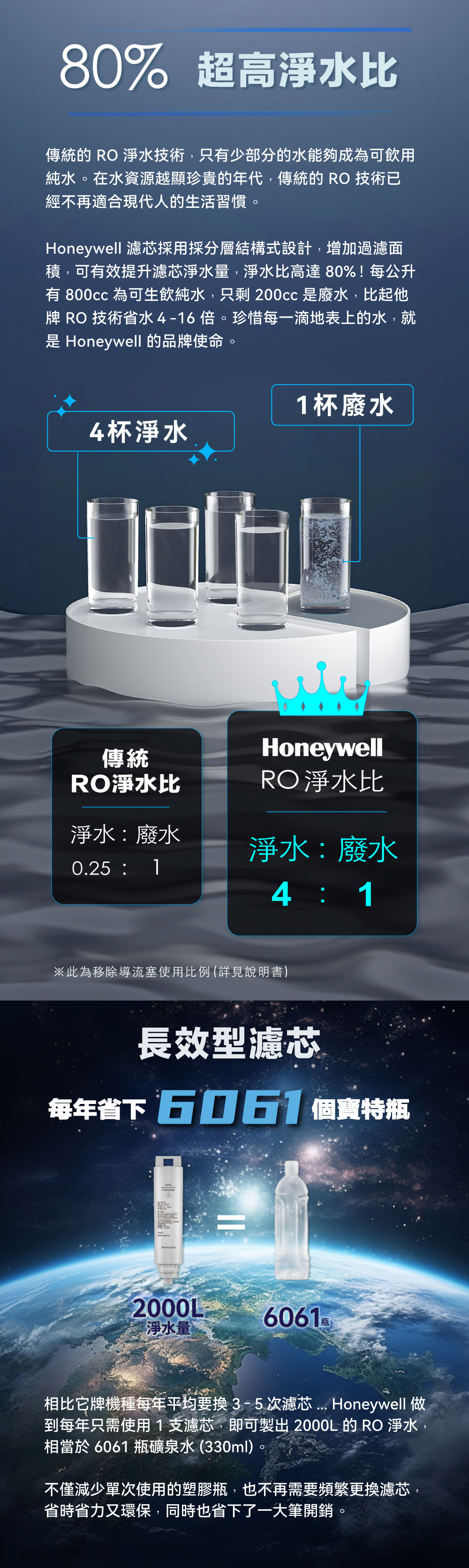 • 超高80%淨水比:減少廢水4~16倍