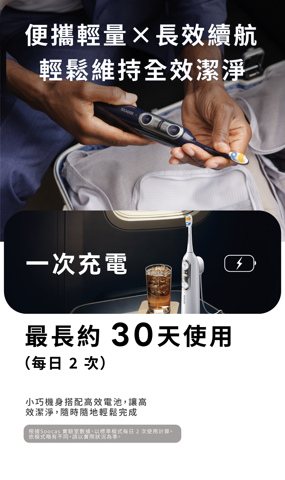 • 長效續航表現:一次充電最長可使用約 30 天